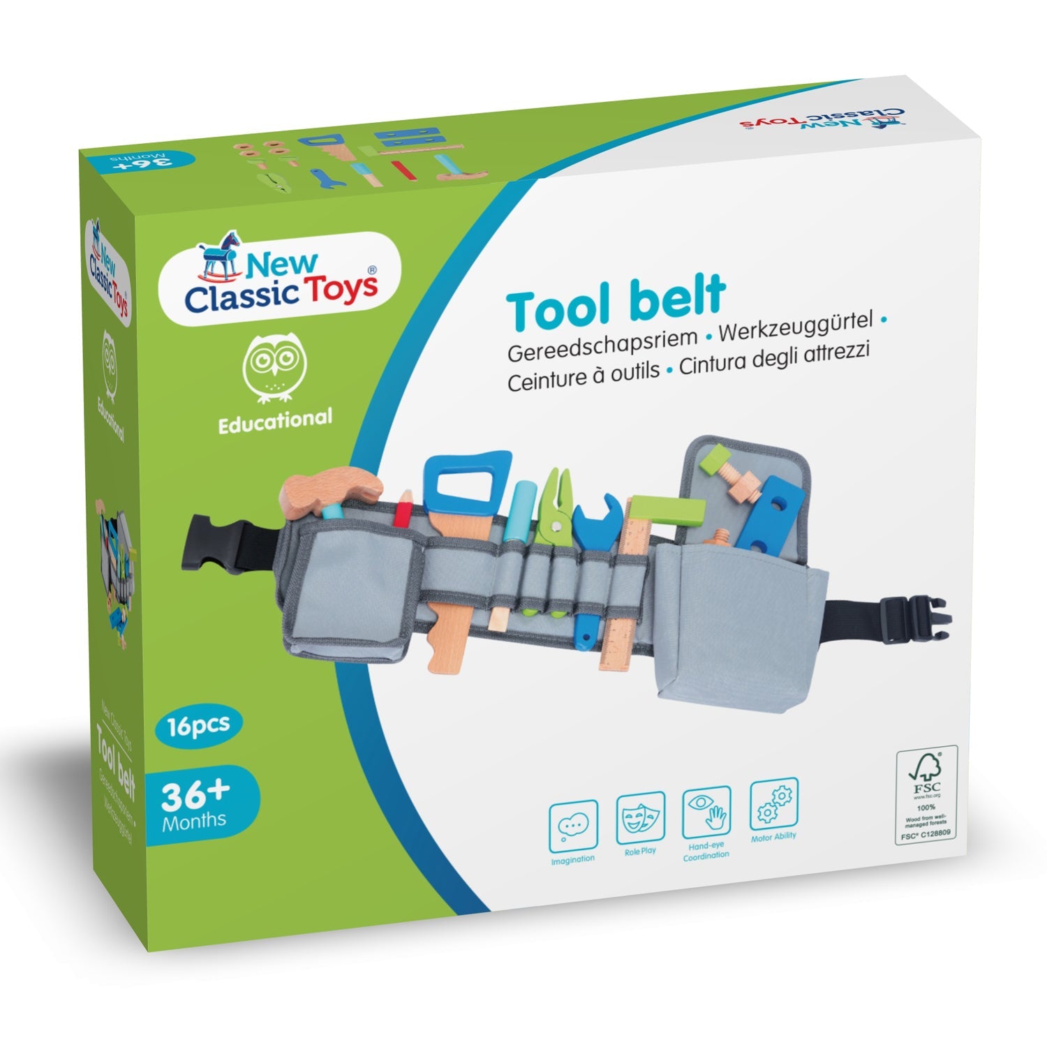 This tool box is part of the New Classic Toys “Educational” productline. Building, stacking, sorting and counting. Playing and learning go hand in hand with the collection ‘Educational’ of New Classic Toys.