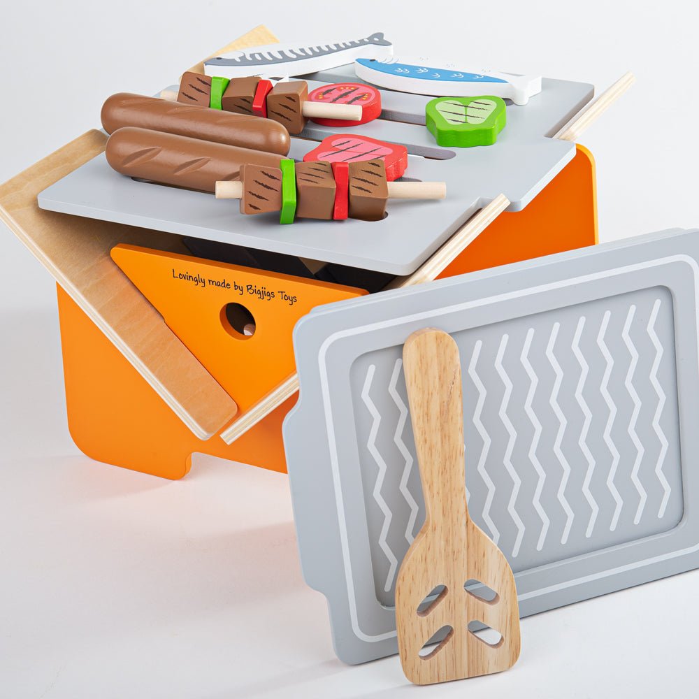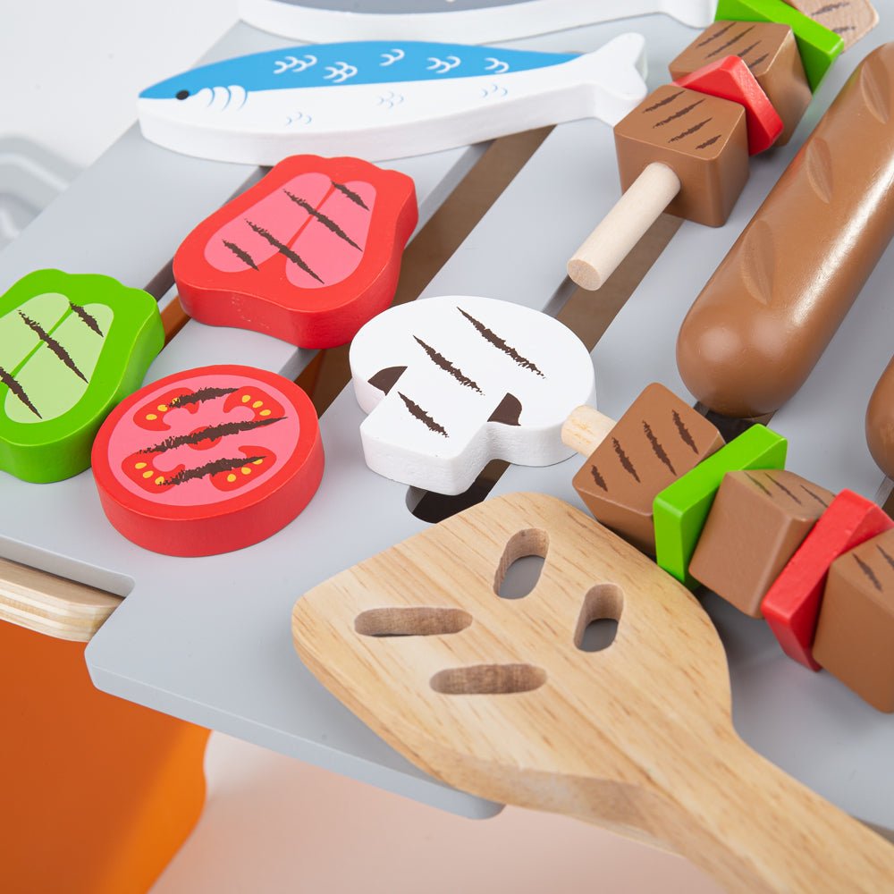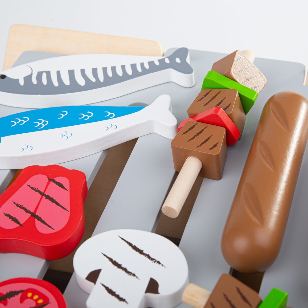 Ideal for imaginative summer play, kids can grill, cook and roast their wooden play food outside – just like Mum and Dad do! With no screws required, this wooden BBQ toy is easily assembled in seconds. When playtime is over, the wooden play food can be neatly stored under the wooden grill.