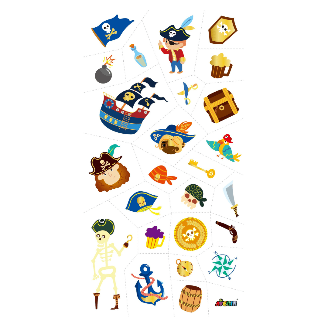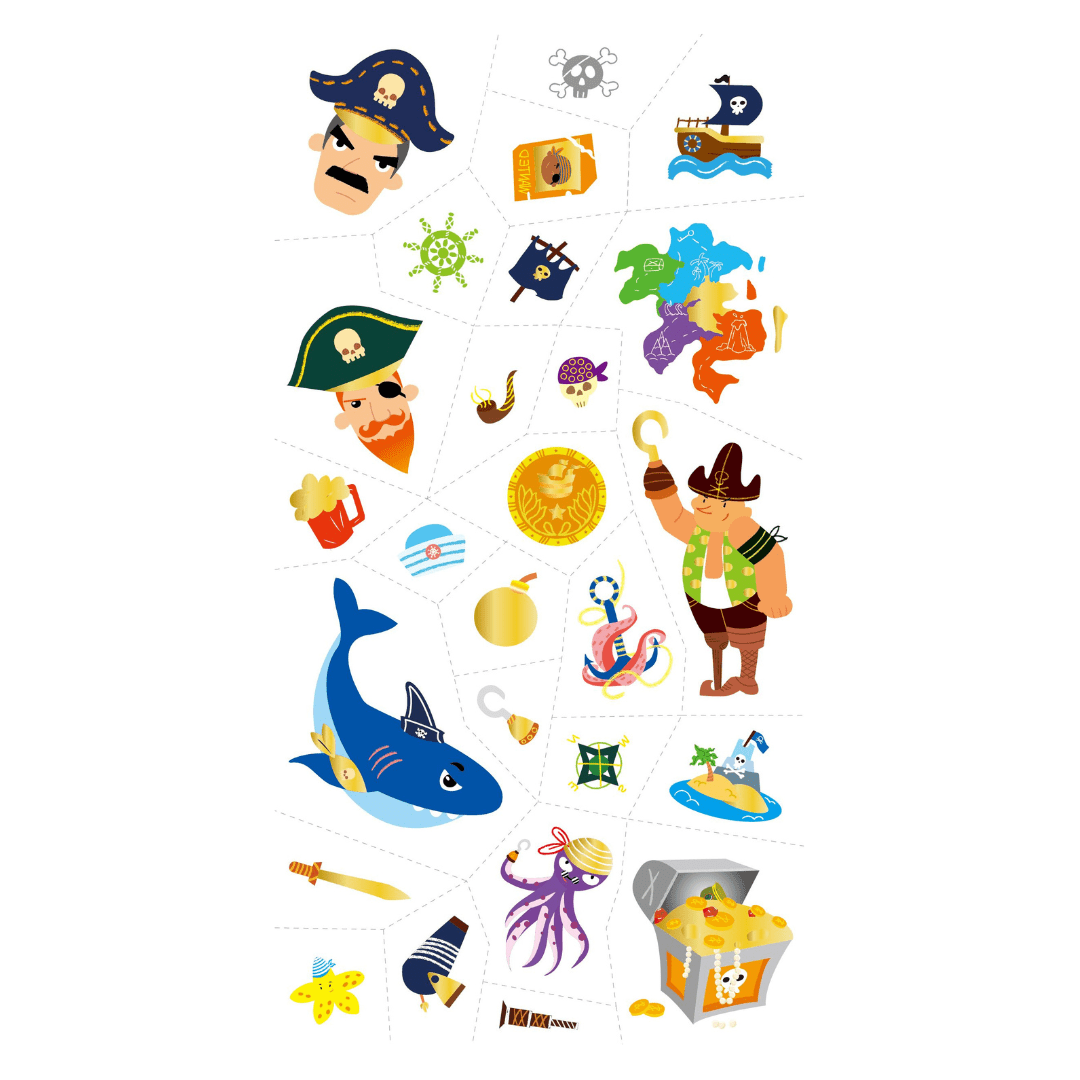 This great pack of golden tattoos features plenty of pirate designs that will create endless hours of fun.