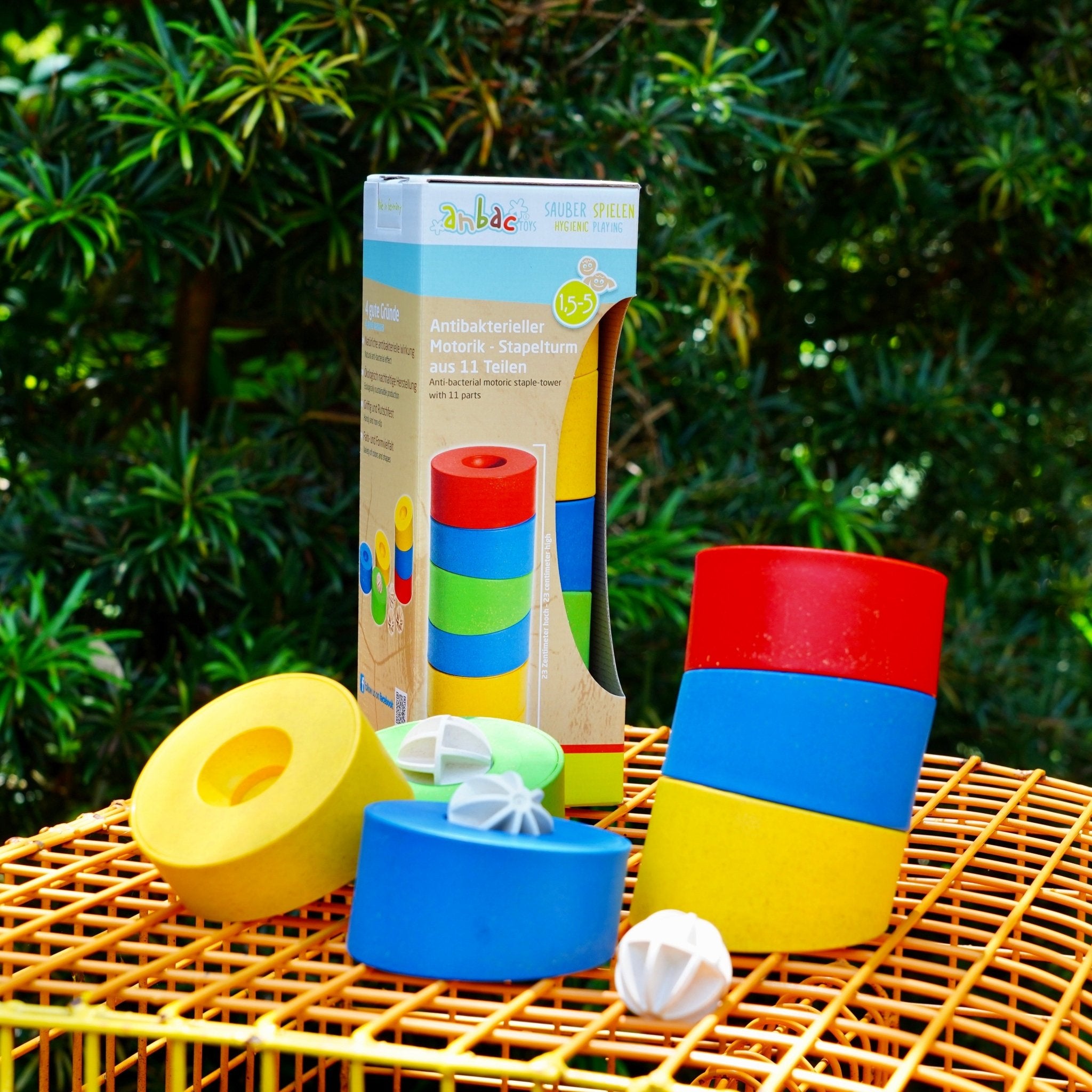 Cut with different angle and shapes, the Anbac Antibacterial Balancing Stacking Tower is a stacking tower a twist! Children will learn different colours, balance and stability with this stacking tower.